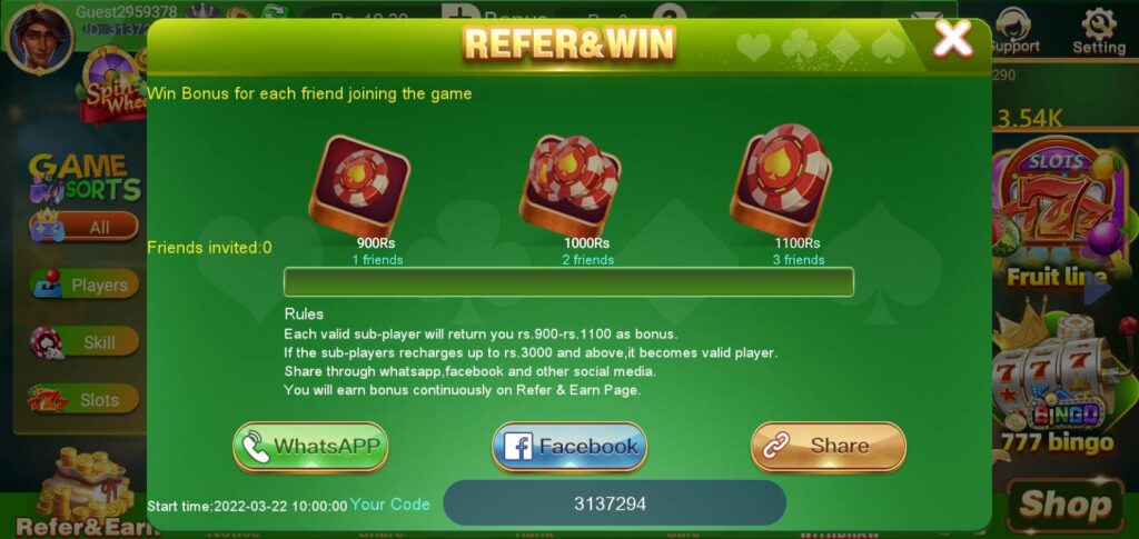 3 Patti Boss has a simple referral system that lets you earn money by inviting friends. Every time someone joins using your referral link, you receive a bonus. The more you invite, the higher your rewards.